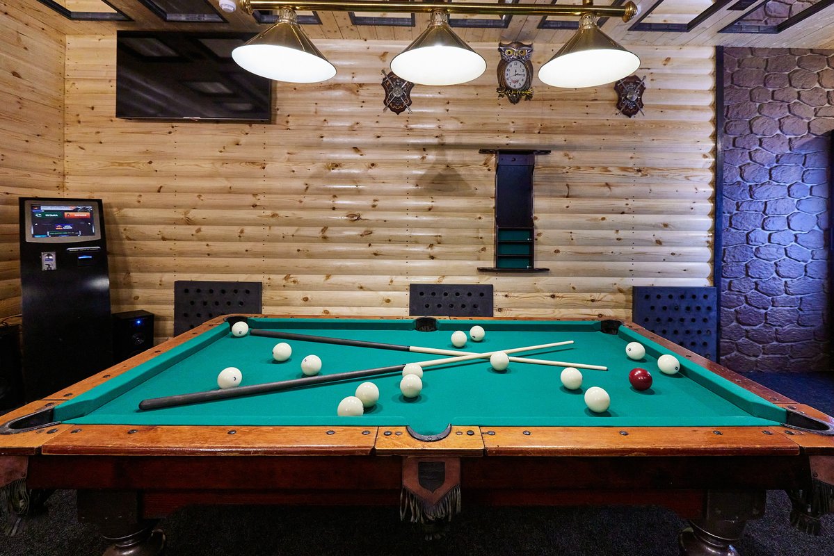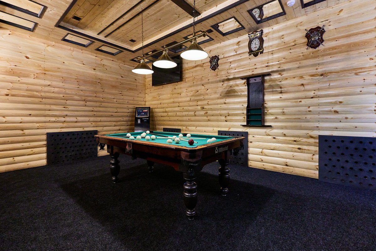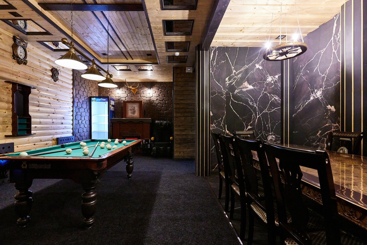 Не хочется в бассейн? Не проблема! Вместо этого можно провести время в нашей комнате отдыха. Мы ставили своей целью создать здесь уютный, практичный интерьер из преимущественно натуральных, экологичных материалов, выбрать мебель, которая будет в равной степени удобной и приятной глазу. Надеемся, что вы его оцените! Для поддержания атмосферы отдыха у нас есть бильярд и караоке. Мы не располагаем собственной кухней, но не возражаем, если вы принесете еду с собой и совместите баню с небольшим застольем. Только не забывайте, что плотная трапеза непосредственно перед посещением парной - это не самая удачная идея, по мнению терапевтов. А вот после парной - совсем другое дело!