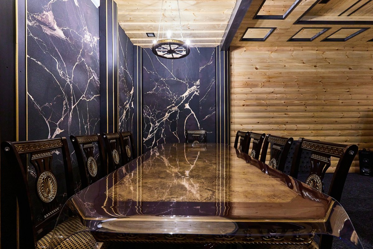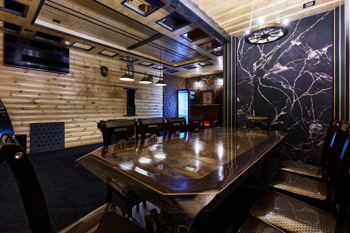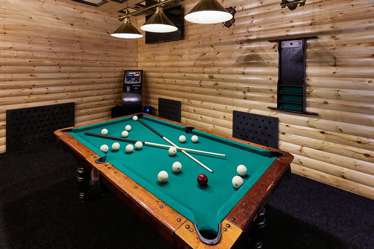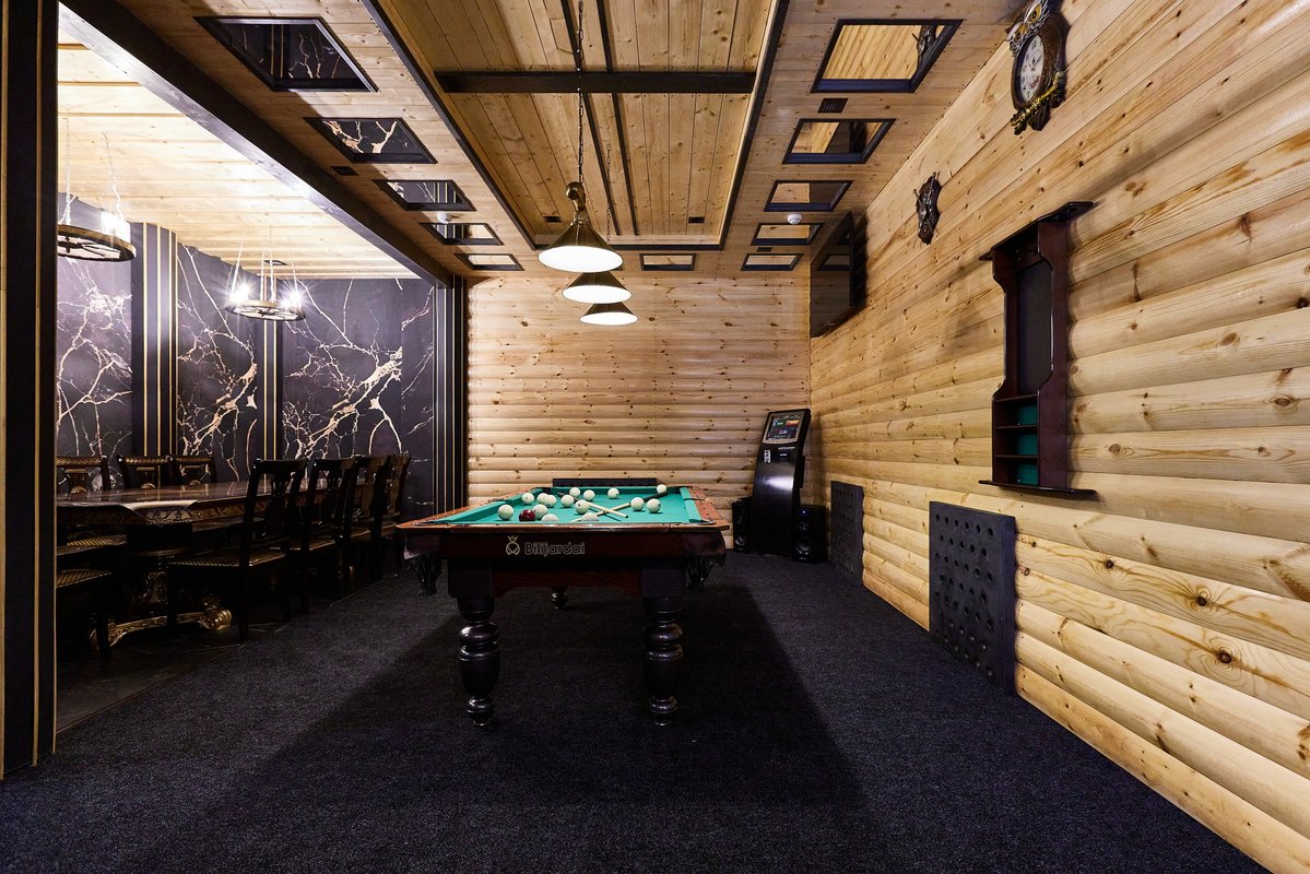 Не хочется в бассейн? Не проблема! Вместо этого можно провести время в нашей комнате отдыха. Мы ставили своей целью создать здесь уютный, практичный интерьер из преимущественно натуральных, экологичных материалов, выбрать мебель, которая будет в равной степени удобной и приятной глазу. Надеемся, что вы его оцените! Для поддержания атмосферы отдыха у нас есть бильярд и караоке. Мы не располагаем собственной кухней, но не возражаем, если вы принесете еду с собой и совместите баню с небольшим застольем. Только не забывайте, что плотная трапеза непосредственно перед посещением парной - это не самая удачная идея, по мнению терапевтов. А вот после парной - совсем другое дело!